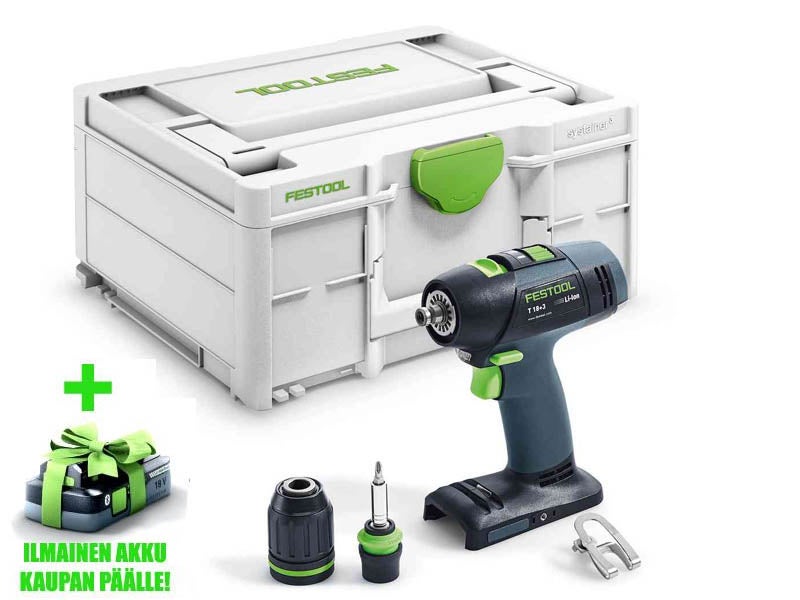 Festool T18 3-Basic-4.0 akkuporakone ilmainen akku!